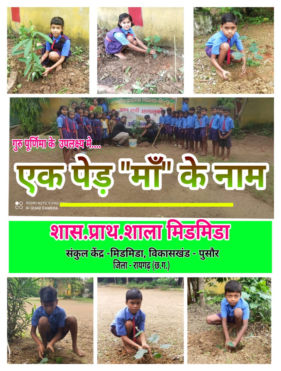 रायगढ़.गुरु पूर्णिमा के पावन अवसर पर विश्व को द्वितीय गुरु के रूप मे प्रकृति के लिए एक पेड़ मां के नाम का आयोजन किया गया। इसमे स्कूल के बच्चों ने एक एक पेड़ अपने माँ के नाम रोप कर प्रकृति को बचाने हेतु संकल्प लिया इस अवसर पर ग्राम मुखिया सरपंच पूर्णचंद गुप्ता का गरिमामयि उपस्तिती एवं एक पेड़ माँ के नाम उनके द्वारा भी पीपल पेड़ रोपा गया साथ हि शाला के प्रधान पाठक् विजेंद्र चौहान ,सहा.शिक्षक रिंकी बिशी एवं मध्यान्ह भोजन समिति सदस्य की उपस्तिथि रही।