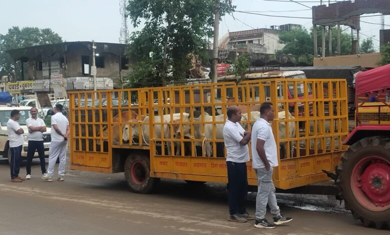 सारंगढ़ शहर की सड़कों पर लावारिस घूमते मवेशियों को भेजा गया गौशाला