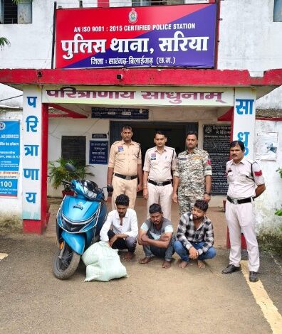 रायगढ़ पुलिस अधीक्षक आंजनेय वार्ष्णेय के सख्त निर्देशों पर अवैध मादक पदार्थों के विरुद्ध चलाए जा रहे अभियान के तहत थाना सरिया पुलिस ने बड़ी सफलता हासिल करते हुए 11 किलो 655 ग्राम गांजा, 2 मोबाइल और एक स्कूटी के साथ 3 आरोपियों को गिरफ्तार किया है। जप्त सम्पत्ति की कुल कीमत लगभग 2,16,000 रुपये आंकी गई है।