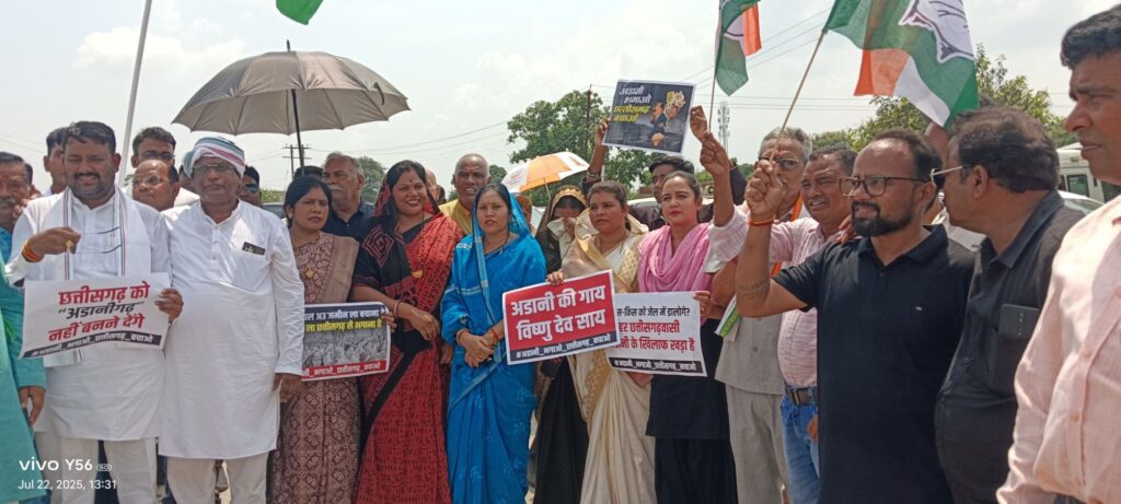आज प्रदेश कांग्रेस अध्यक्ष के नेतृत्व में सारंगढ़ में कांग्रेस पार्टी द्वारा जोरदार चक्काजाम और घेराव किया गया। यह विरोध प्रदर्शन रायगढ़ नेशनल हाईवे पर आयोजित हुआ, जहां कांग्रेस कार्यकर्ताओं ने जल, जंगल और जमीन को बचाने तथा अडानी समूह को छत्तीसगढ़ से बाहर करने की मांग को लेकर जोरदार नारेबाजी की।