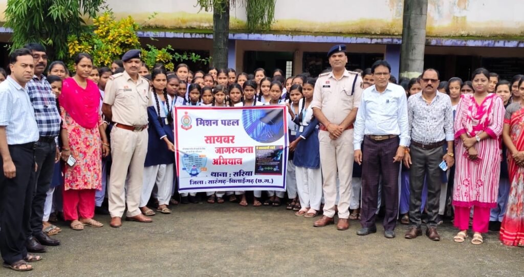 सारंगढ़ शास.कन्या.उच्च माध्य. सरिया में स्कूली बच्चों को बताए गये साइबर अपराध से बचने के उपाय सारंगढ़ बिलाईगढ के पुलिस अधीक्षक आंजनेय वार्ष्णेय के आदेशानुसार अतिरिक्त पुलिस अधीक्षक निमिषा पांडे एवं डीएसपी  अविनाश मिश्रा के मार्गदर्शन में थाना प्रभारी प्रमोद यादव के नेतृत्व में आज मिशन पहल अभियान के तहत शासकीय कन्या उच्चतर माध्यमिक विद्यालय सरिया में छात्र-छात्राओं को साइबर अपराध से संबंधित जानकारी दी गई।